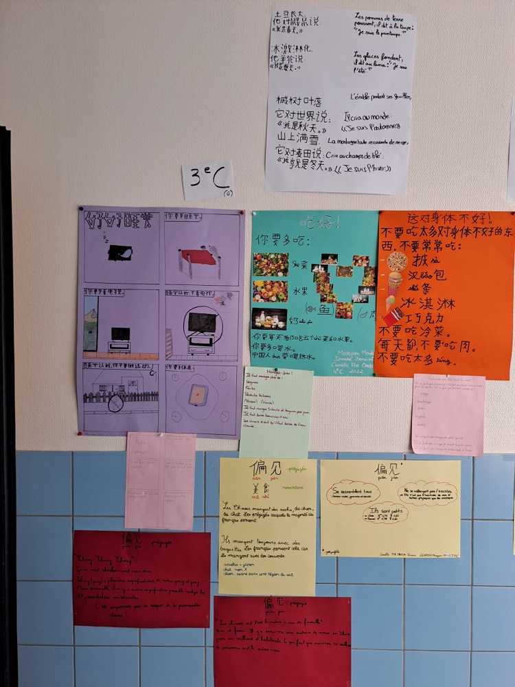 Au programme, activités de décorations, de jeux de mots, d’étude des stéréotypes, de poèmes (le printemps des poètes a lieu en même temps), affichage et mise en avant des travaux d’élèves dans toutes les langues, mur des mots dans toutes les langues parlées au collège etc, autant d’activités qui ont rythmé cette semaine des langues au collège !