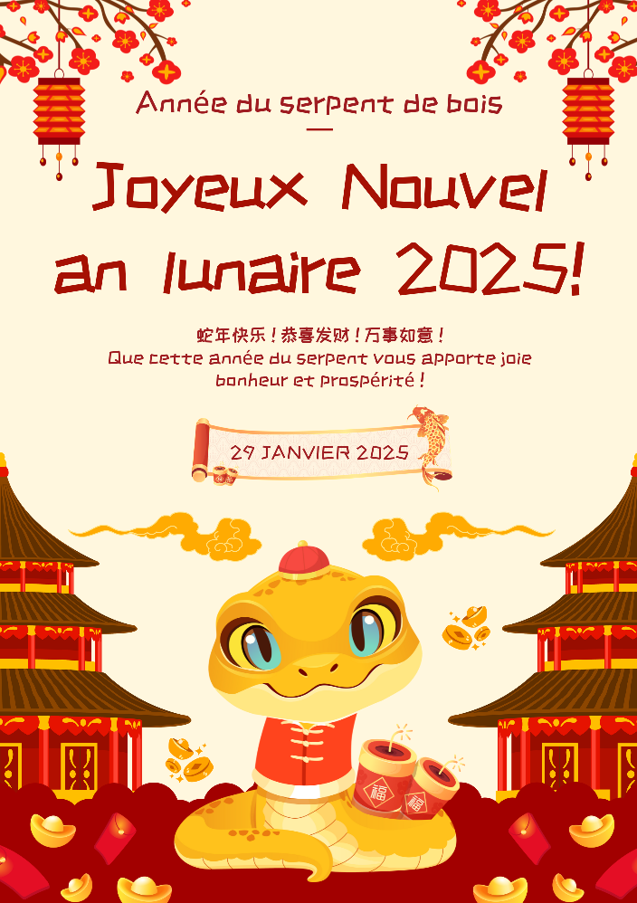 Cette année, nous fêtons le serpent de bois ! 蛇年大吉,心想事成 !